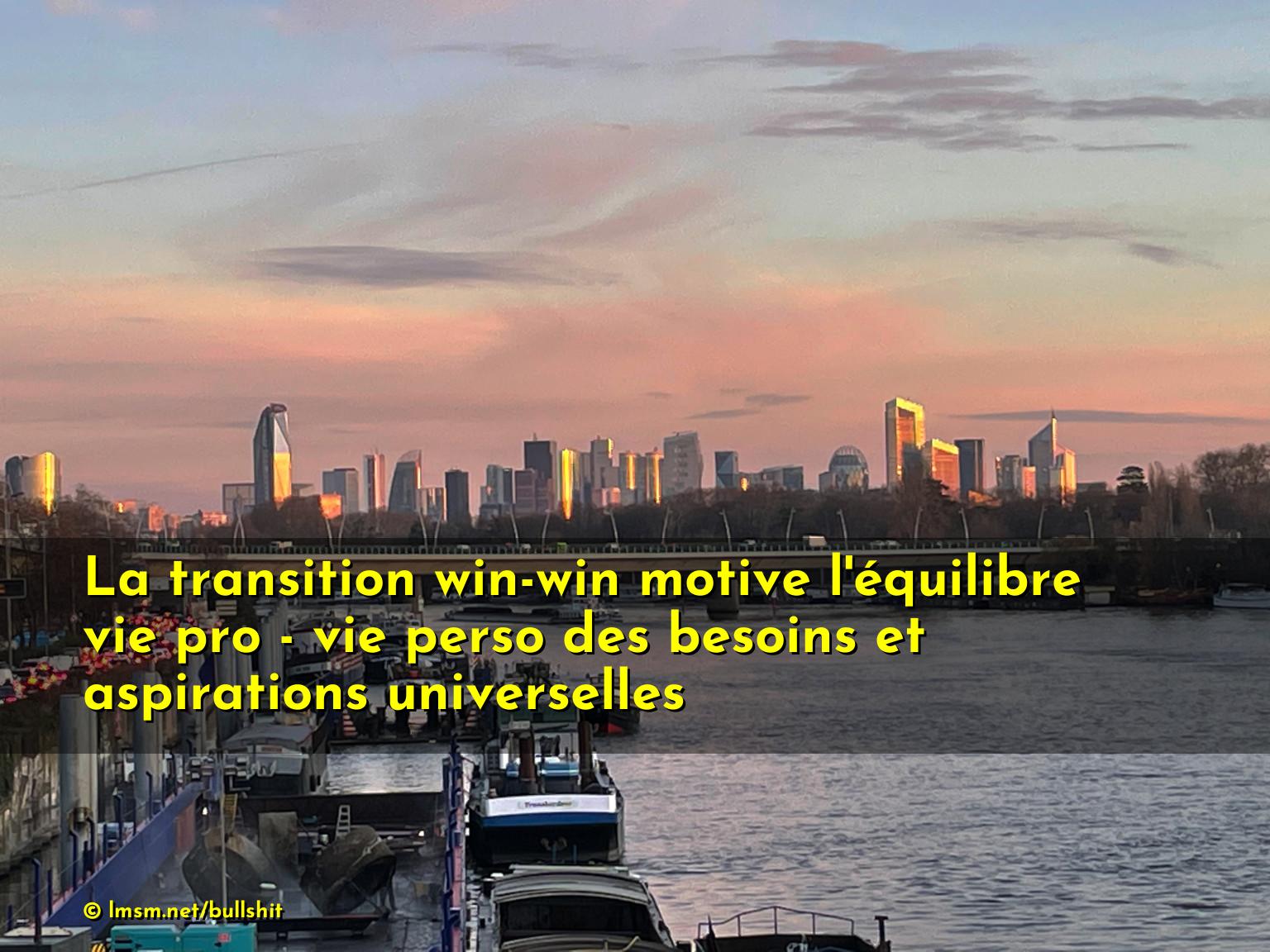 La transition win-win motive l'équilibre vie pro - vie perso des besoins et aspirations universelles