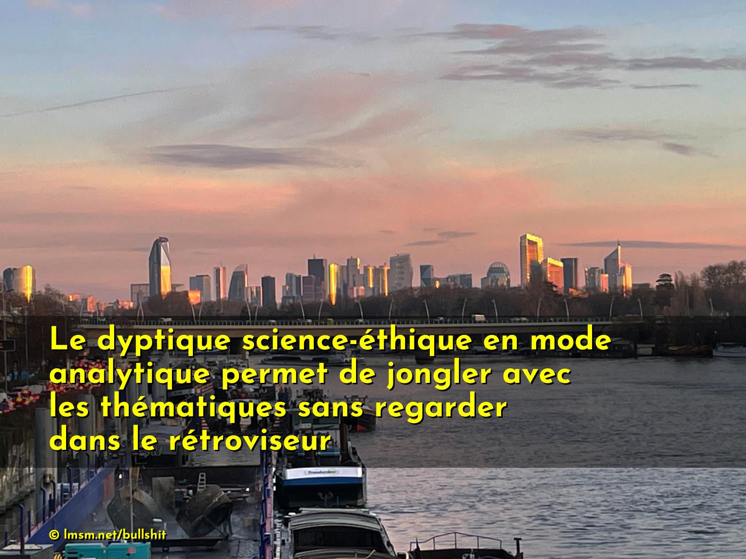 Le dyptique science-éthique en mode analytique permet de jongler avec les thématiques sans regarder dans le rétroviseur