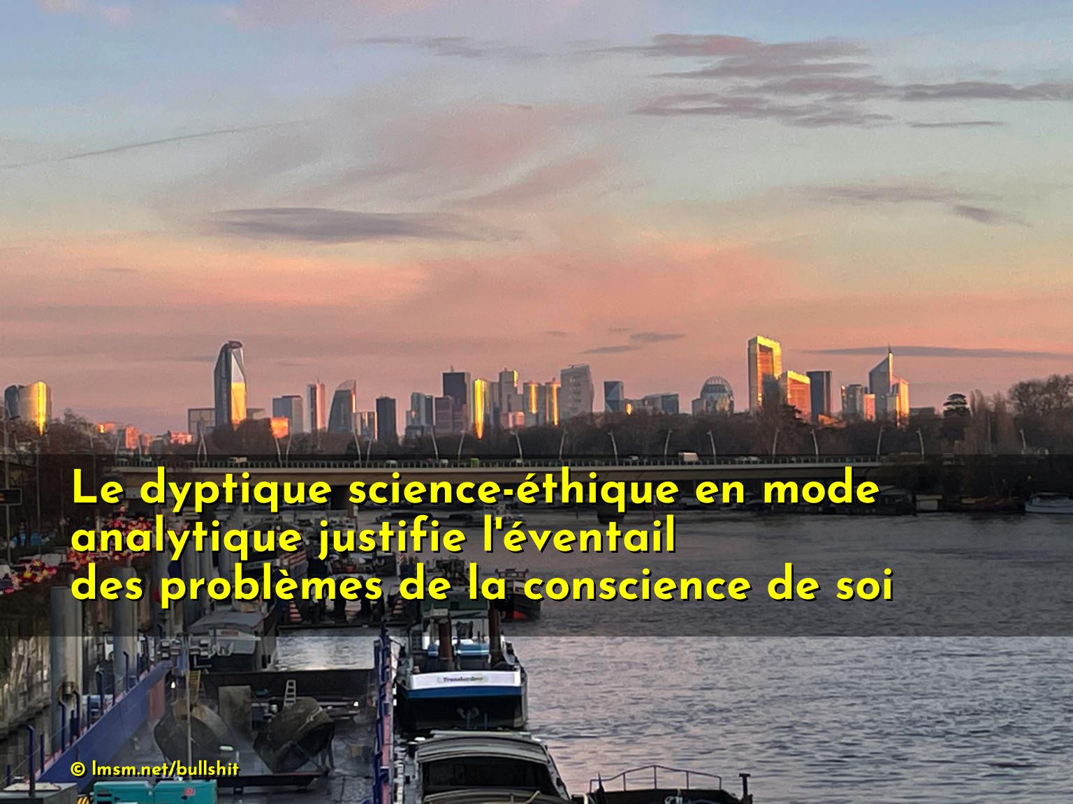 Le dyptique science-éthique en mode analytique justifie l'éventail des problèmes de la conscience de soi