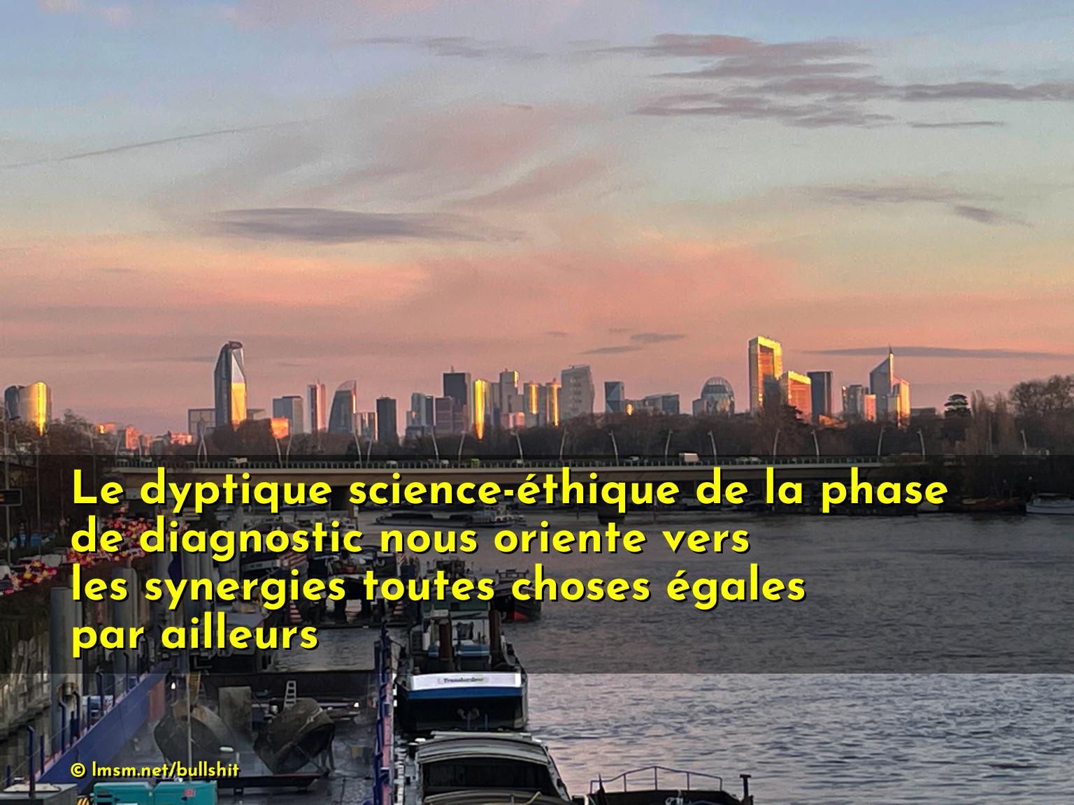 Le dyptique science-éthique de la phase de diagnostic nous oriente vers les synergies toutes choses égales par ailleurs