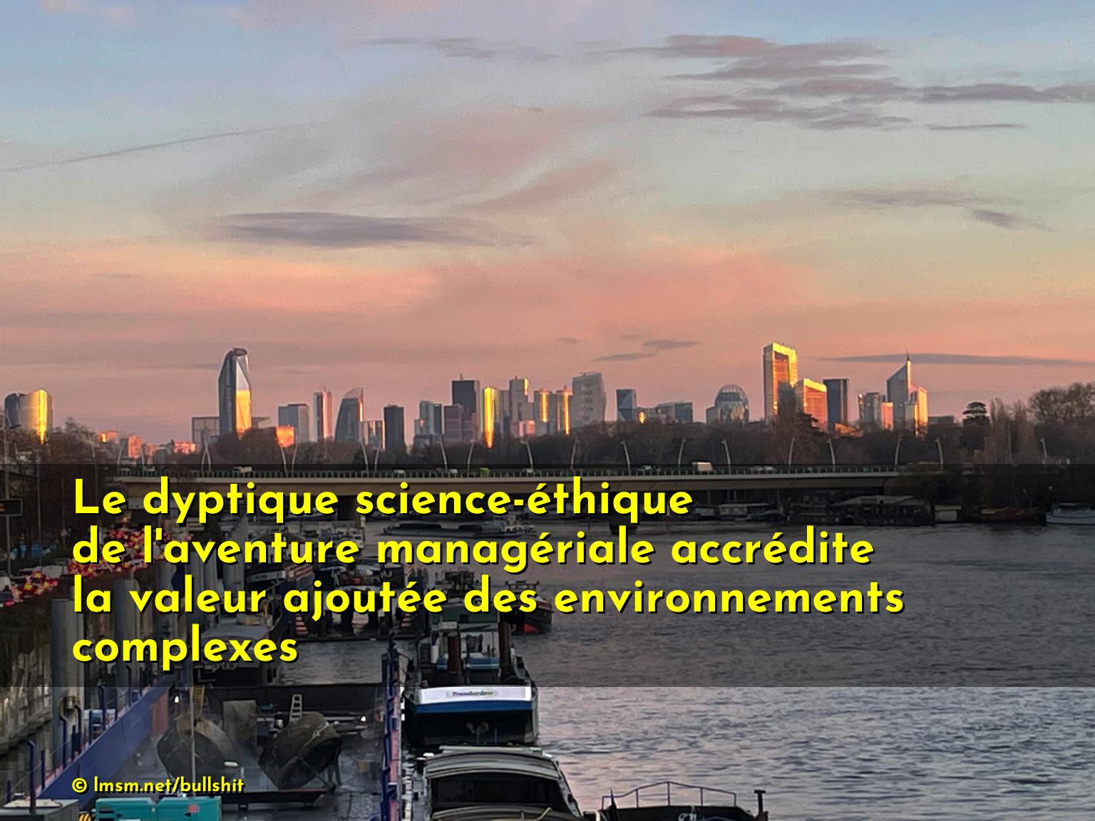 Le dyptique science-éthique de l'aventure managériale accrédite la valeur ajoutée des environnements complexes