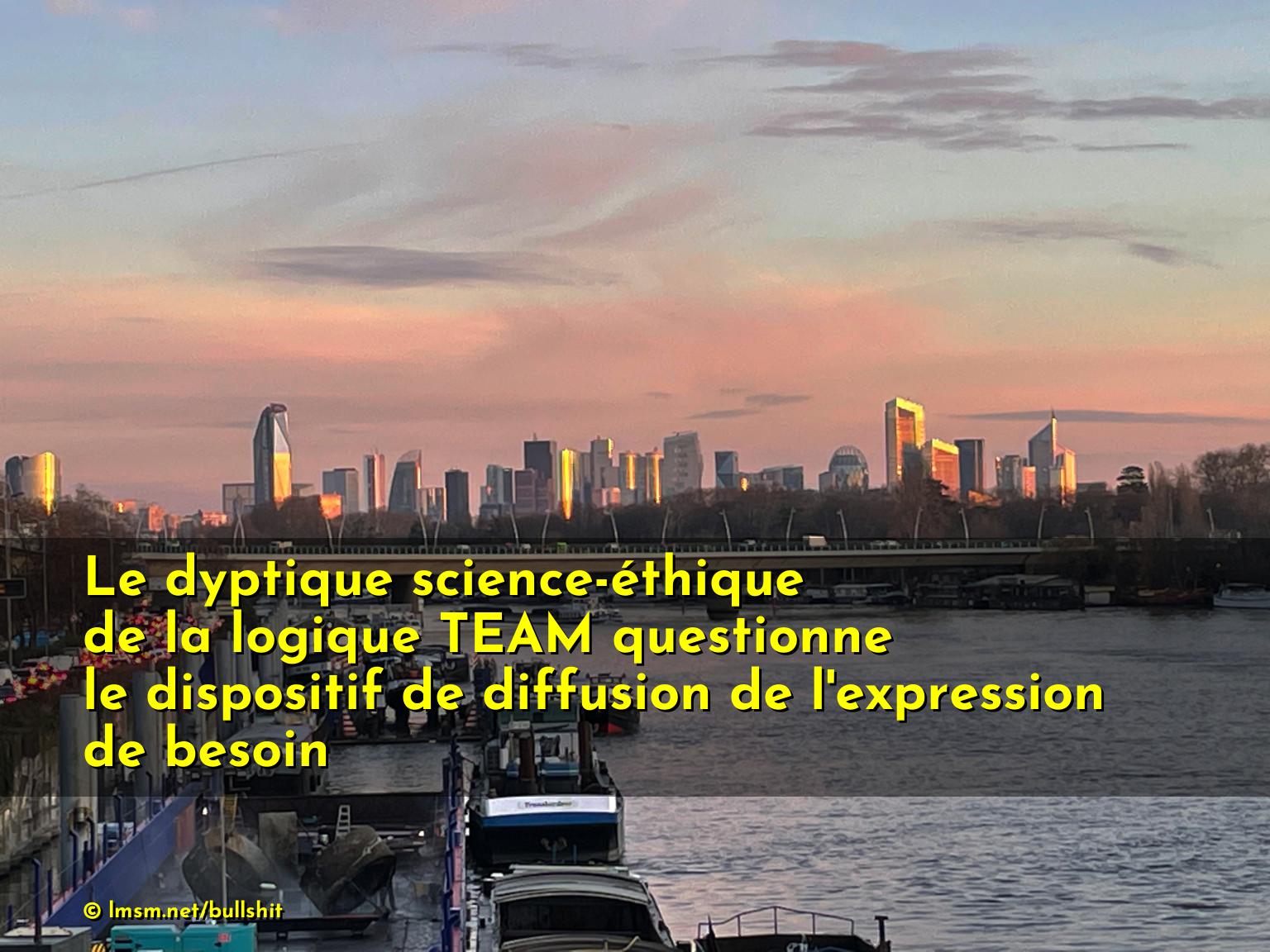 Le dyptique science-éthique de la logique TEAM éclaire le dispositif de diffusion de l'expression de besoin