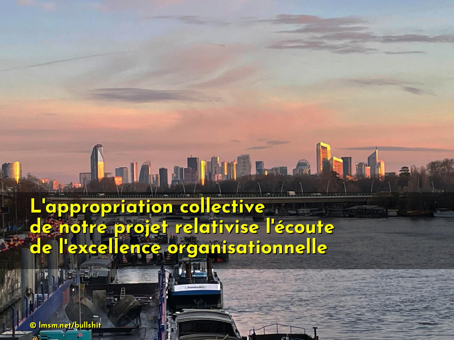 L'appropriation collective de notre projet relativise l'écoute de l'excellence organisationnelle