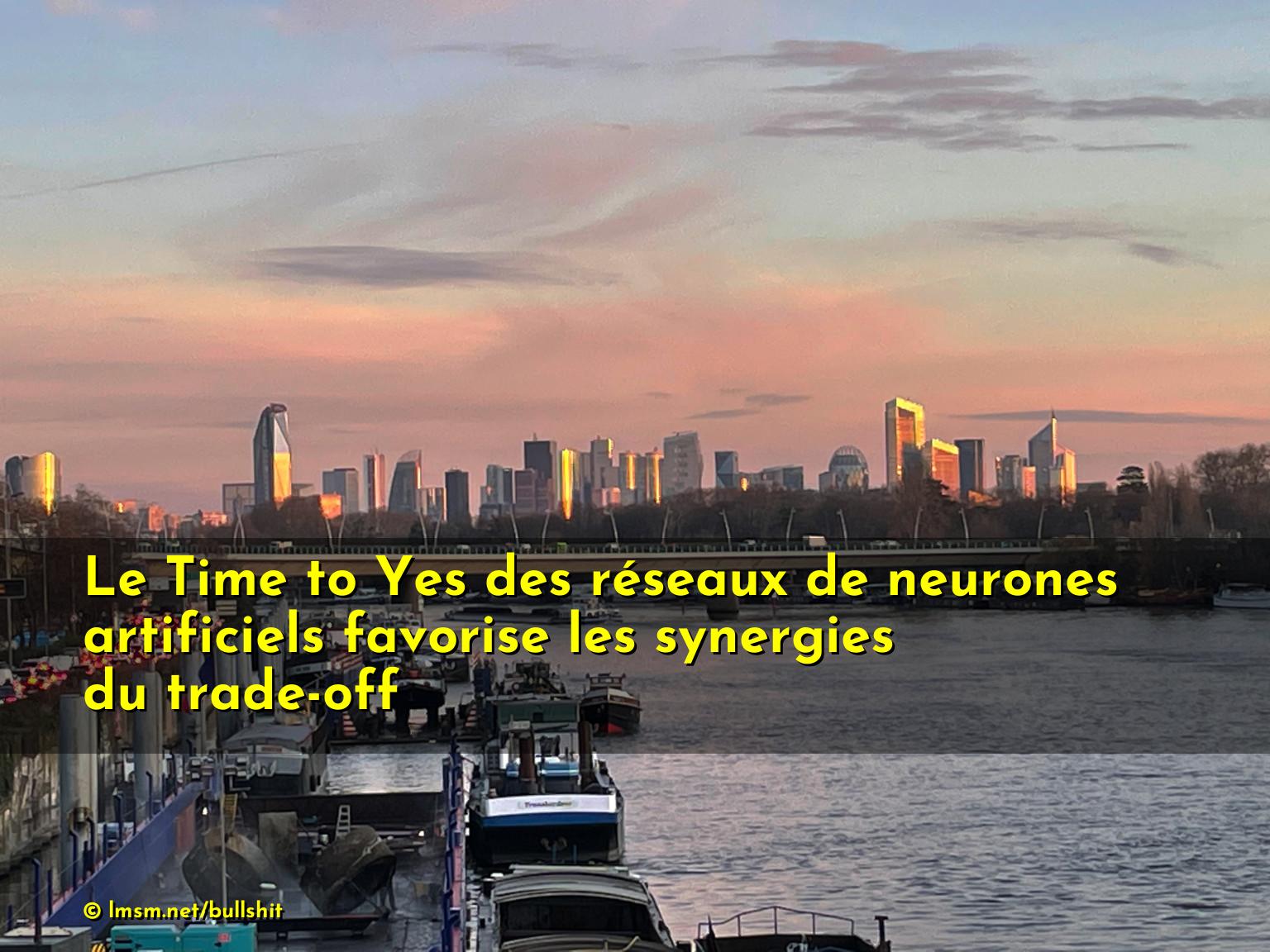 Le Time to Yes des réseaux de neurones artificiels favorise les synergies du trade-off