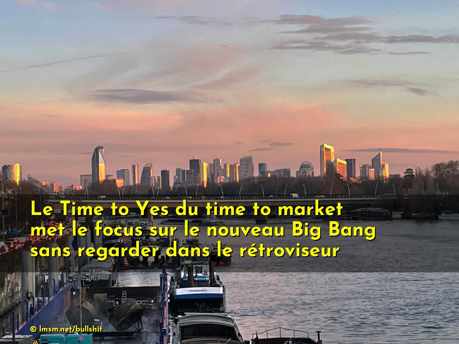 Le Time to Yes du time to market met le focus sur le nouveau Big Bang sans regarder dans le rétroviseur