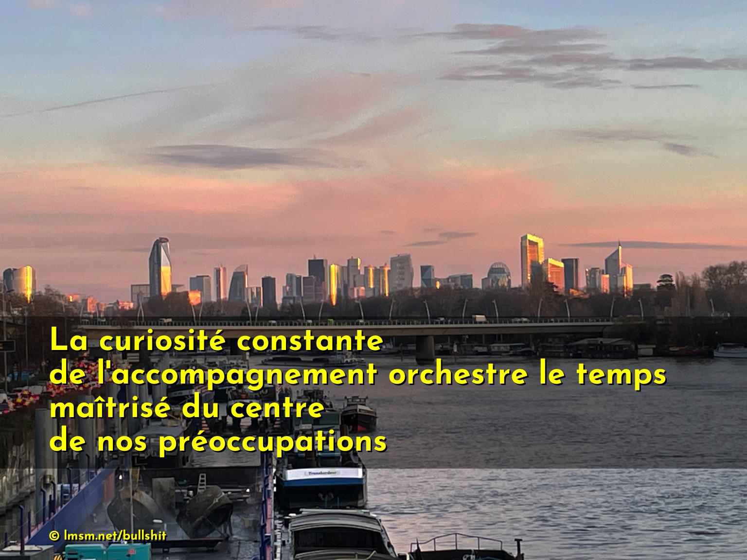 La curiosité constante de l'accompagnement orchestre le temps maîtrisé du centre de nos préoccupations