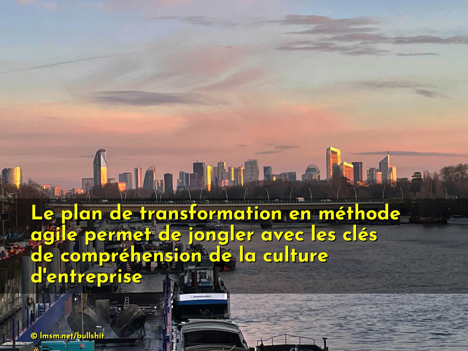 Le plan de transformation en méthode agile permet de jongler avec les clés de compréhension de la culture d'entreprise