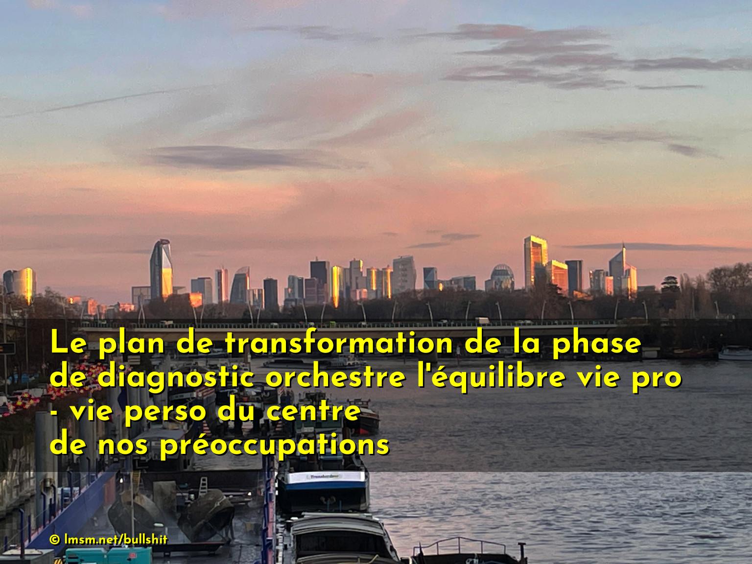 Le plan de transformation de la phase de diagnostic orchestre l'équilibre vie pro - vie perso du centre de nos préoccupations