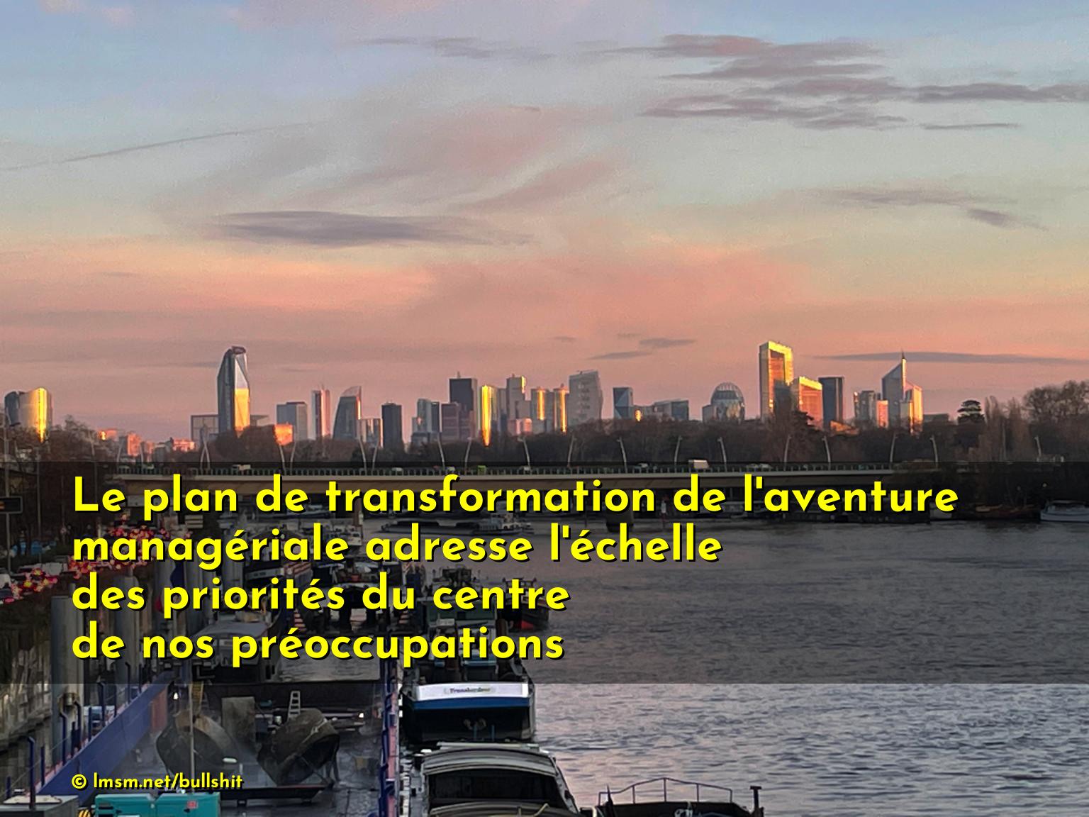 Le plan de transformation de l'aventure managériale adresse l'échelle des priorités du centre de nos préoccupations