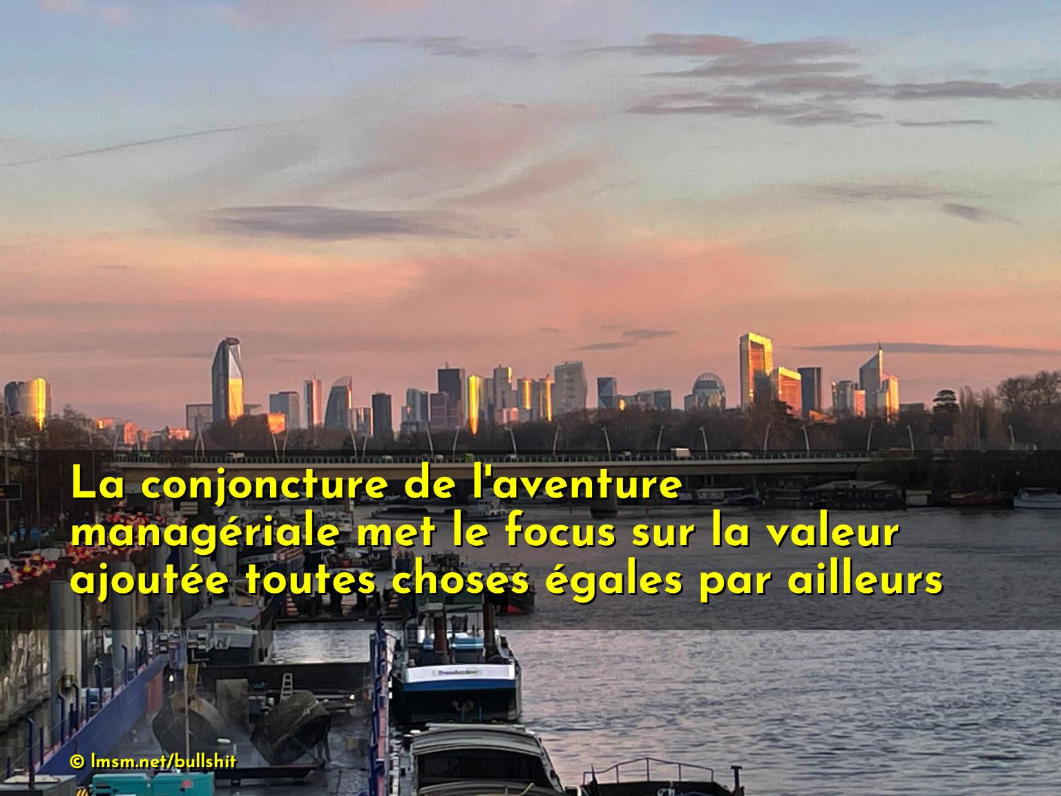 La conjoncture de l'aventure managériale met le focus sur la valeur ajoutée toutes choses égales par ailleurs