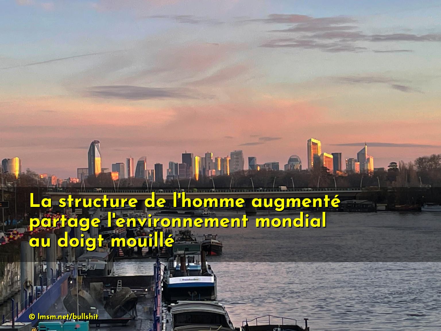 La structure de l'homme augmenté partage l'environnement mondial au doigt mouillé