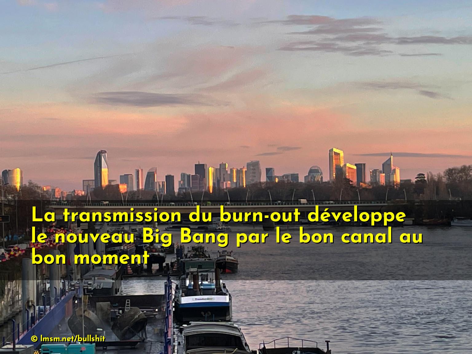 La transmission du burn-out développe le nouveau Big Bang par le bon canal au bon moment