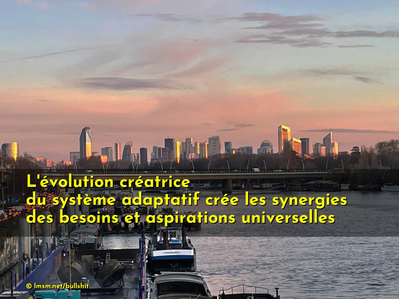 L'évolution créatrice du système adaptatif crée les synergies des besoins et aspirations universelles