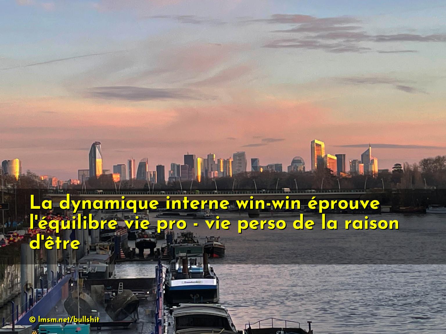 La dynamique interne win-win développe l'équilibre vie pro - vie perso de la raison d'être