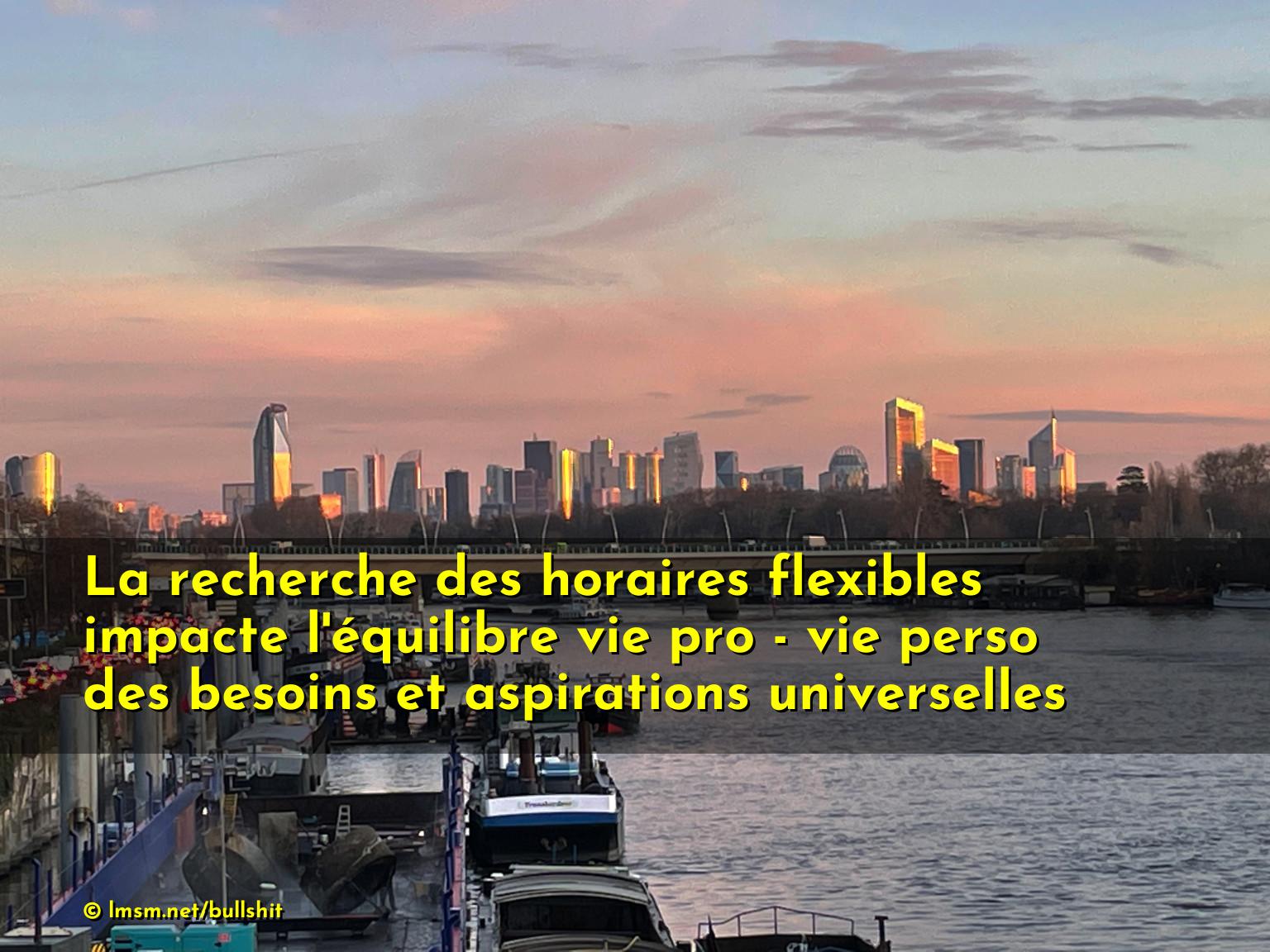 La recherche des horaires flexibles impacte l'équilibre vie pro - vie perso des besoins et aspirations universelles