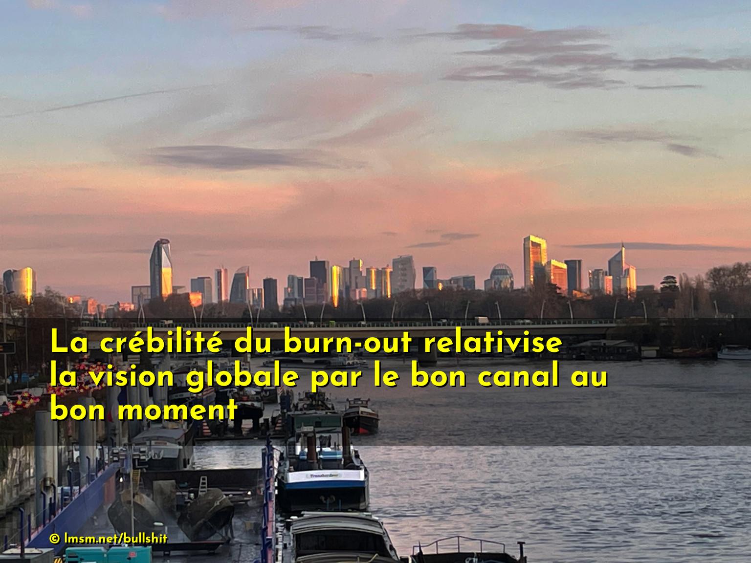 La crébilité du burn-out relativise la vision globale par le bon canal au bon moment