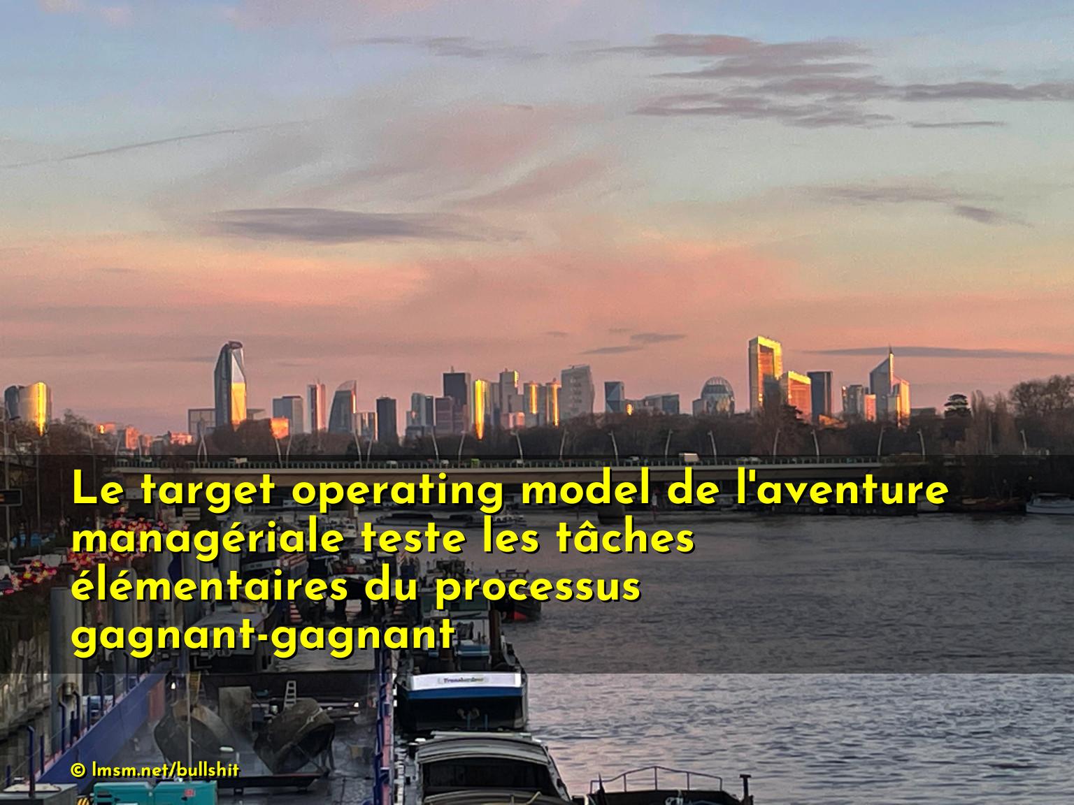 Le target operating model de l'aventure managériale teste les tâches élémentaires du processus gagnant-gagnant